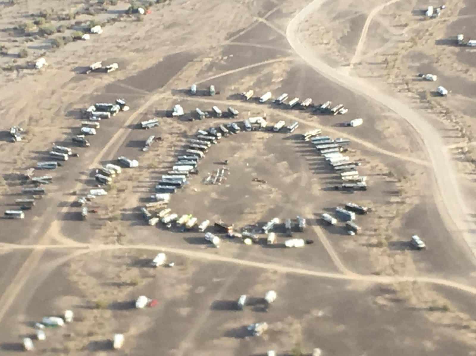 Traveled to Quartzsite for the annual Bluebird Birds of a Feather Rally. Great event and well attended. This year there were over 100 coaches in attendance. After a number of folks, approx 15 coaches went on to Mexico, Rocky Point…. We Chickened Out. Check out the photo…many coaches in the area.